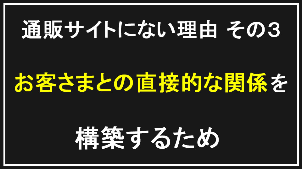 他社の通販サイトではなく、自社の公式サイトからのみの販売とすることで、マーケティング戦略を自由に設計・実施できるようになります。
